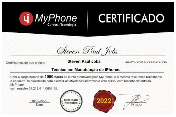 Após a conclusão do curso, você receberá, automaticamente, o certificado de conclusão como técnico em manutenção em aparelho celular, o que lhe dará autoridade e segurança para atuar onde quiser.